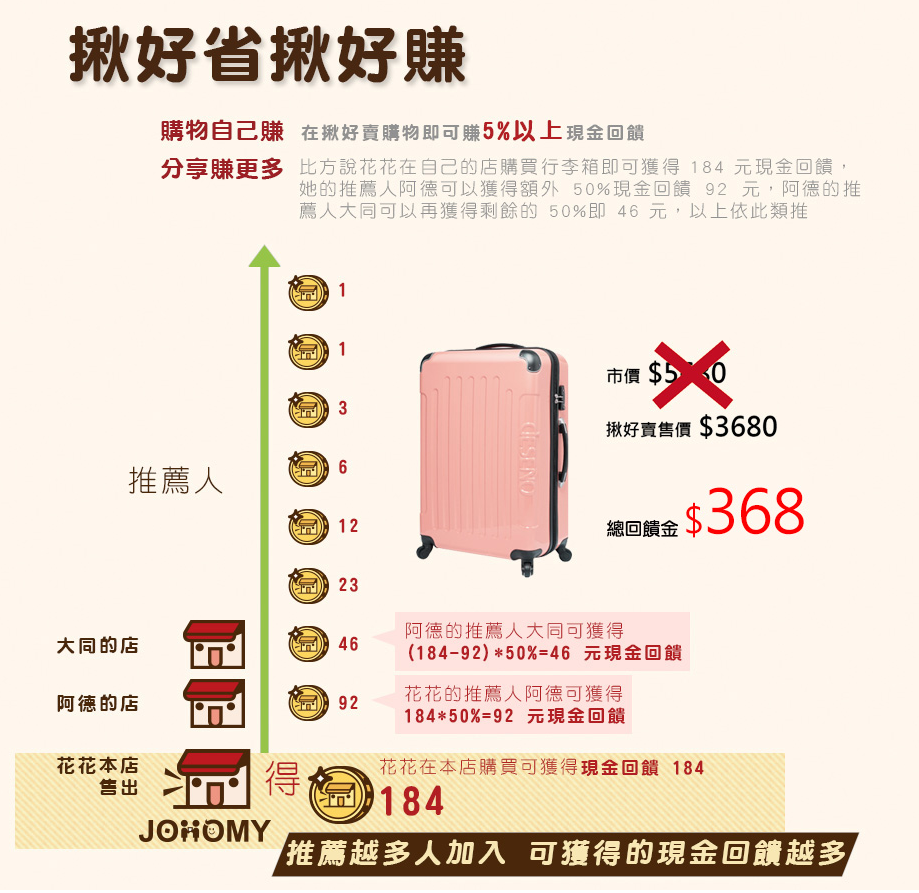 其實揪好賣真正的賣點其實是分錢平台,但分潤的錢從哪來?主要從廠商原本要支付給實體通路、各電商通路平台的上架費,以及廣告費。每項商品的售價,廠商抽出10%做為回饋金,給賣家一層層分潤。分潤制度為回饋金的餘額一半,直到把錢分完。